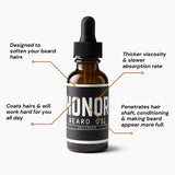 Honor's premium heavyweight (HW) beard oil blend is a simple concoction of four oils that we designed to soften your beard hairs and have a slower absorption rate. It's a great option if you enjoy thicker viscosity oils that'll work hard for you all day long. Vitamin E is our favorite ingredient in this blend because it helps coat the beard hairs and soften the coarsest of beards!